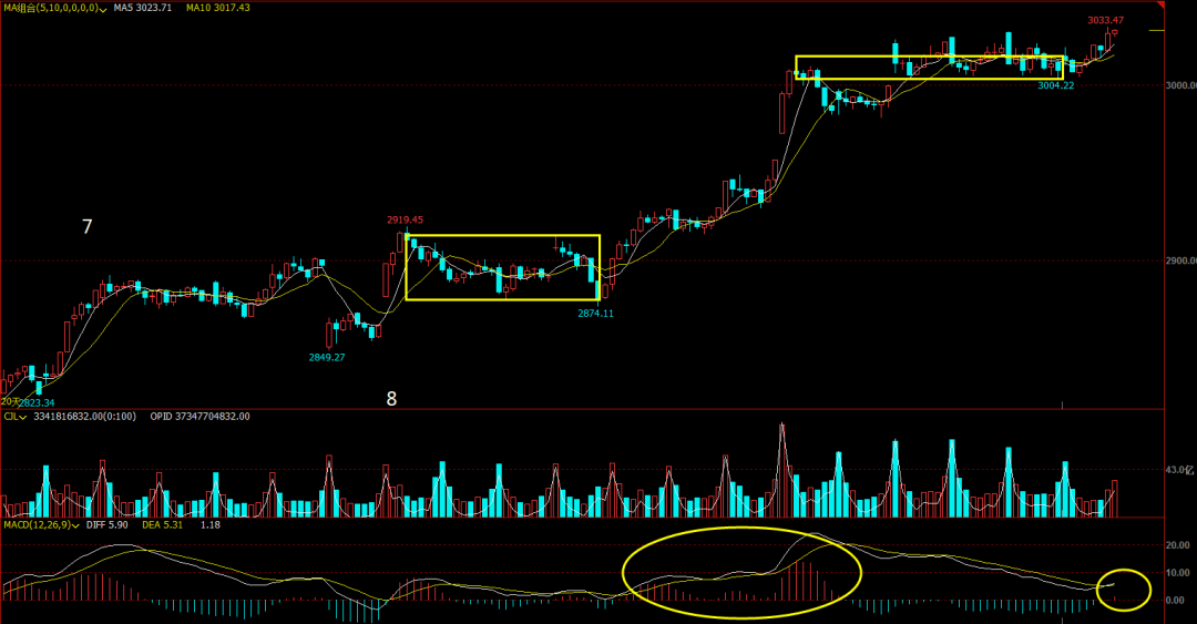 行情至此,从2733到今天收盘,已经悄然有了300点涨幅,而且即将突破7月2日的3048那个高点以及回补5月的大金毛缺口,中线形态非常健康。短线上,则有一个5分级别(1D2)的潜在背驰,目前处于背驰段,除非指数一举突破3150点,否则,从2874点起来的这个5分趋势即将完成,可以直接看30分钟图,比较清晰,也就是下周起,要关注30分图里再次放红的MACD柱子面积是否有背驰!而要想破坏背驰,必须有三胖等权重的配合,这也是下周关注的重点!