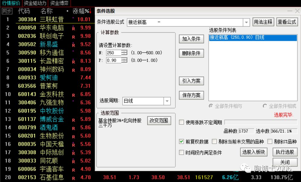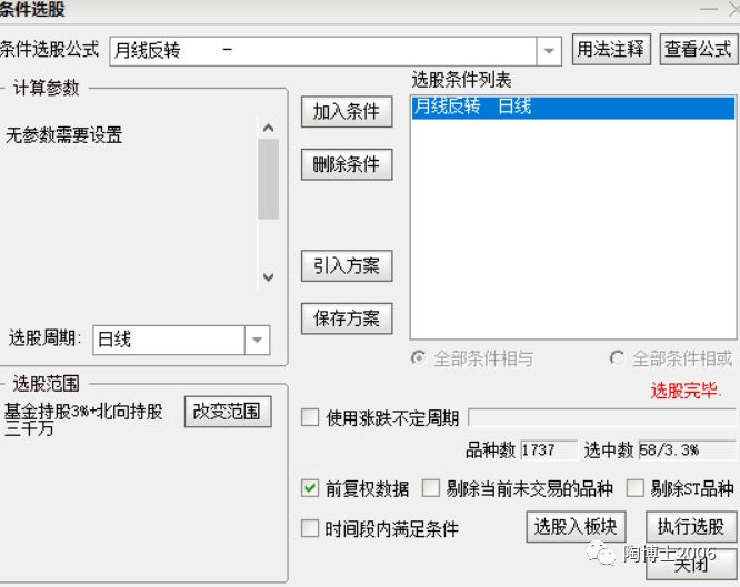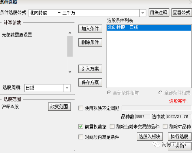第三步,在“基金持股3%+北向资金三千万”的选股板块中进行选股