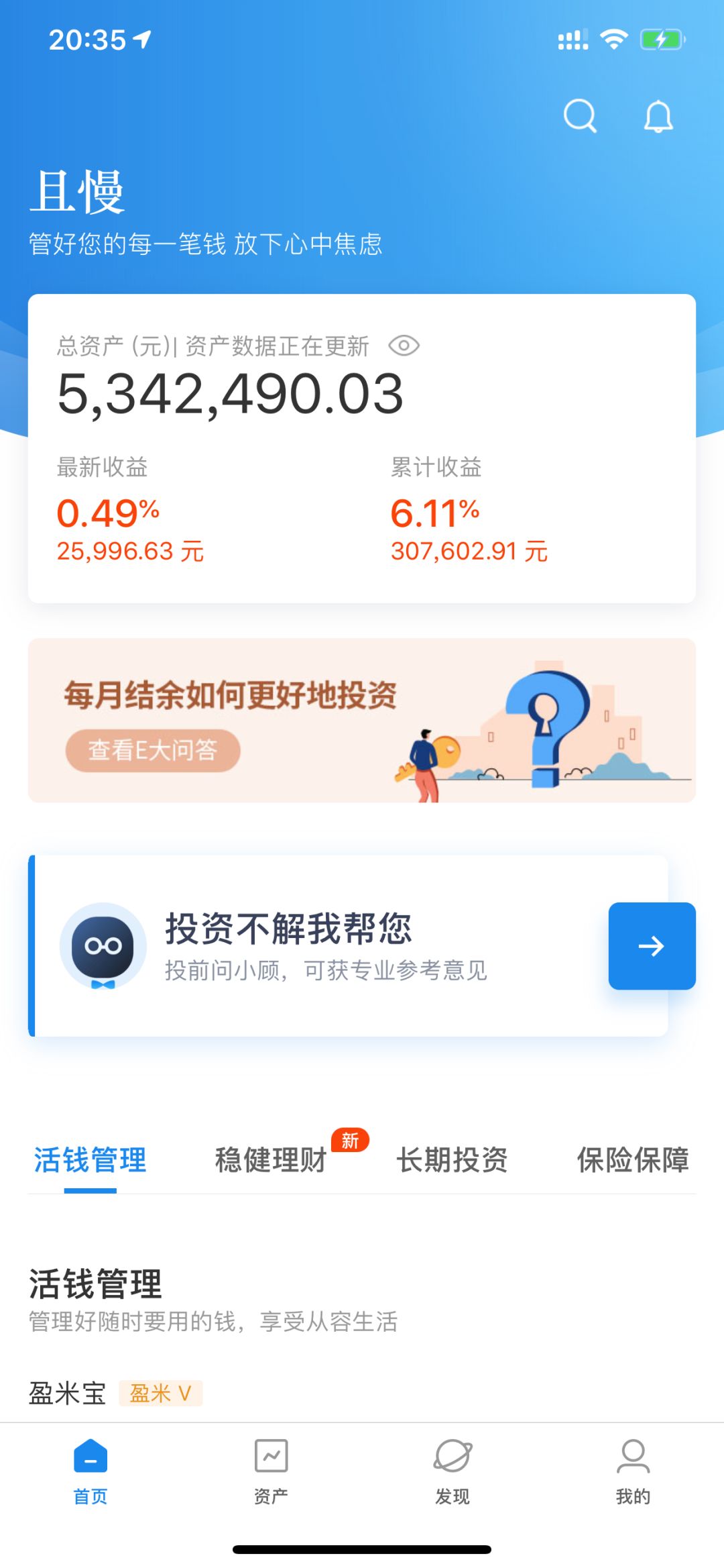 最新的资产是 5,342,490.03,基金净值是 1.0319,本周增长 3.95%。