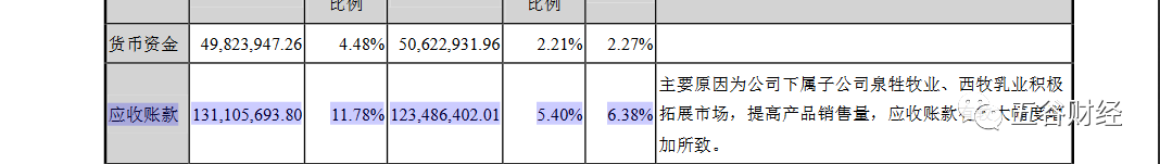 对此,西部牧业方面表示,主要原因为公司下属子公司泉牲牧业、西牧乳业积极拓展市场,提高产品销售量,应收账款有较大幅度增加所致。