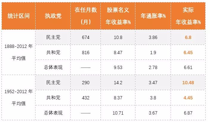 在《股市长线法宝》一书中,作者杰里米•西格尔就“无聊”地研究过,美国不同总统、不同政党执政时期,美股的不同表现。