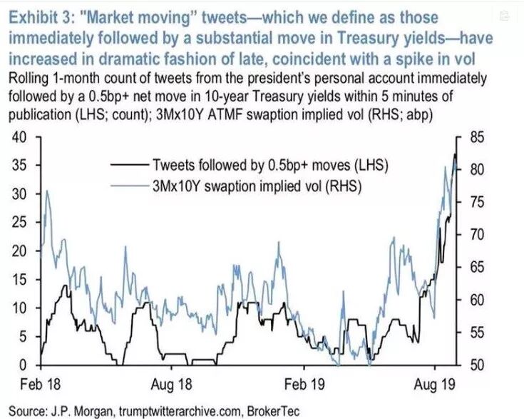 摩根大通研究发现,一般会在特朗普推文发出5分钟后,对收益率曲线产生影响。