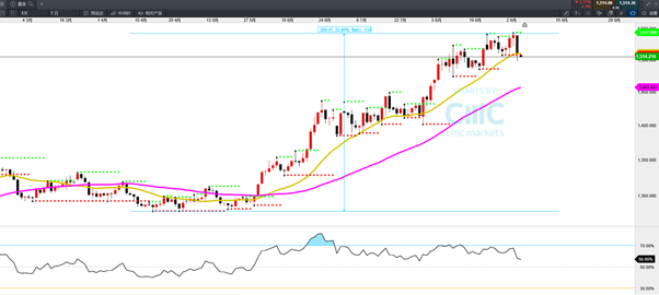 中线的宏观逻辑目前没有改变,当前日线上,留意黄金1482—1490美元水平区域的支撑,RSI日线回撤50%水平,有利于黄金重拾升势。