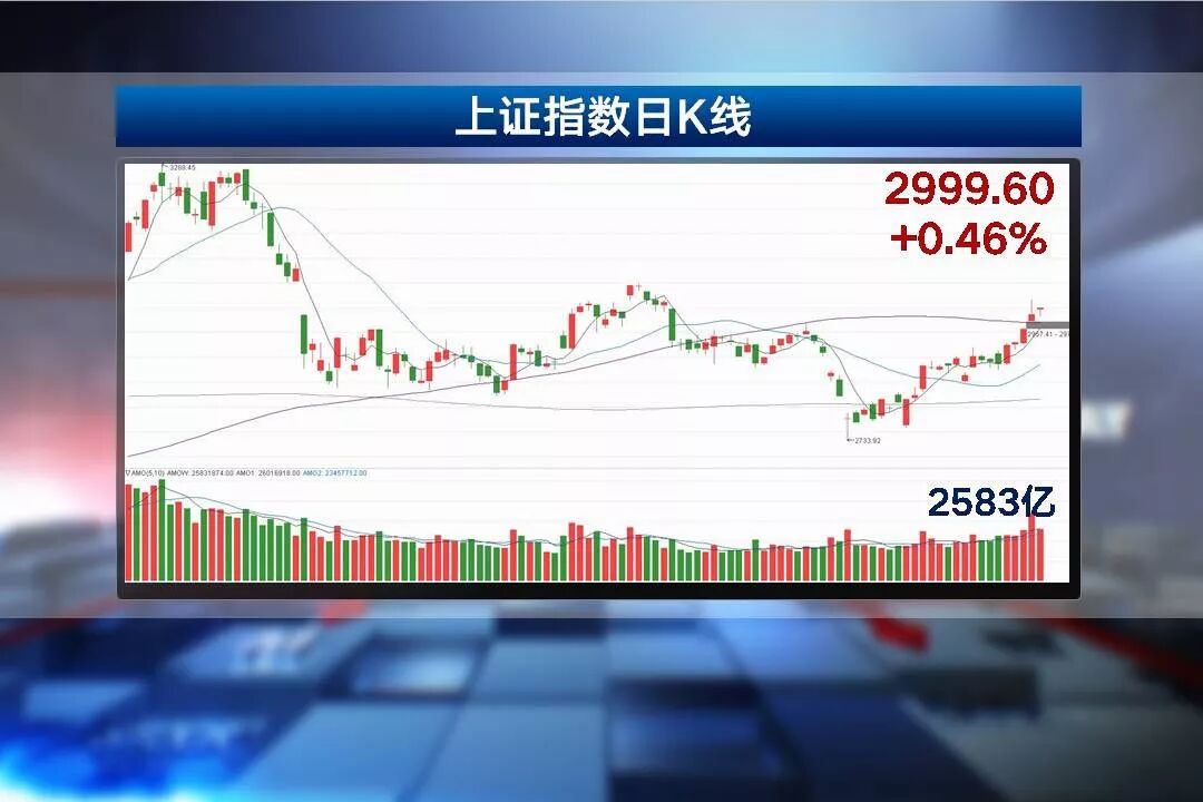 截至收盘,沪指报收2999.60,上涨0.46%,创业板指报收1692.24,上涨0.19%,两市成交6340亿元,涨停41家,2只个股跌停,赚钱效应为58%。