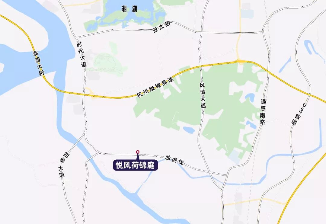 悦风荷锦庭周边群山环绕,北面是当地有名的虎爪山,翻过山就是湘湖景区三期;南面是元宝山,满目青翠。