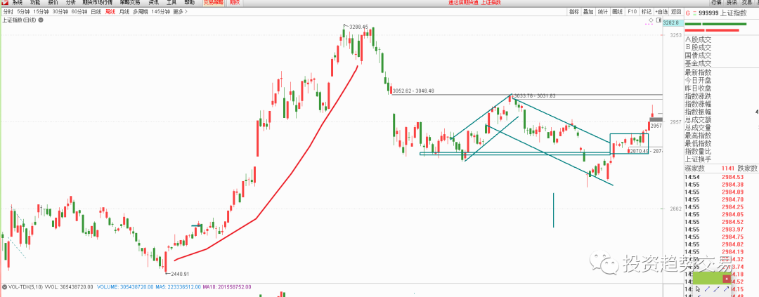 走势分析:今日指数继续上涨,跳空高开,指数冲击3000点回落,形成上影线阳线,明日指数继续冲高,震荡