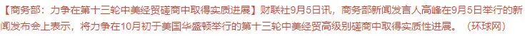 - 今天一大早,又有了新情况。 上午9点多,传出中美经贸高级别磋商牵头人通话的消息。 中美重启磋商,有何看点呢? 商务部新闻发言人高峰表示,9月5日上午双方牵头人进行了很好的通话,明确了下一步磋商的