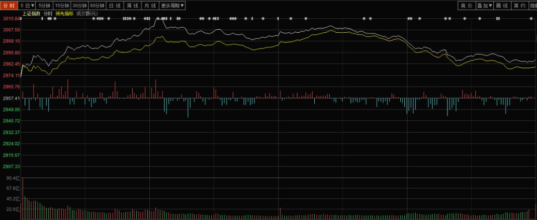 关于午后的跳水的原因?从短线来看:上日涨停板高开低走,连板数量和连板率不升反降,还有48.57%的炸板率。也就是说,今天无脑追高的资金,很多已经吃了面,亏钱效应,这是一个隐患。其次今日是大金融为代表的权重行情,短线的空间被压制,完全是机构型资金所主导。从位点和形态来看:3000点依然有压力,这里会有一个博弈的阶段。日K长上影线+短实体阳线,加上爆量——这个在技术分析上,是上攻无果,需要时间消化才能继续上攻。