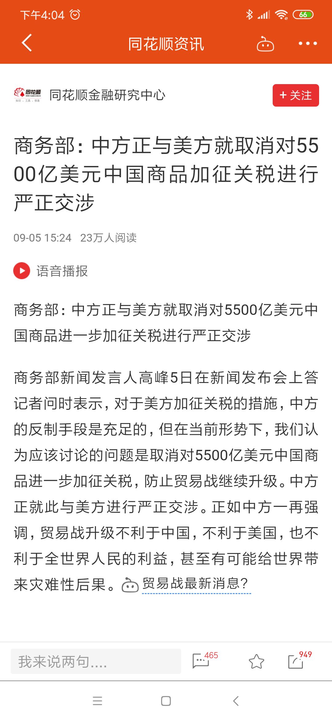 - 今天一大早,又有了新情况。 上午9点多,传出中美经贸高级别磋商牵头人通话的消息。 中美重启磋商,有何看点呢? 商务部新闻发言人高峰表示,9月5日上午双方牵头人进行了很好的通话,明确了下一步磋商的
