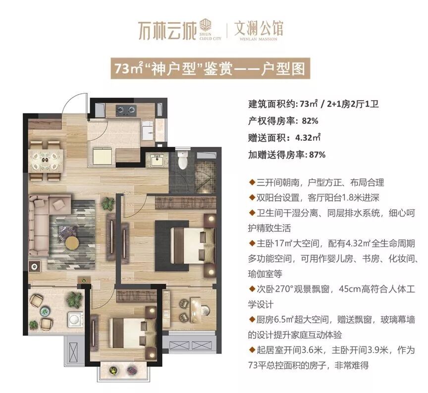 石林云城这次开盘的户型中还有主城非常稀缺73㎡的小户型,总价低,非常适合刚需:
