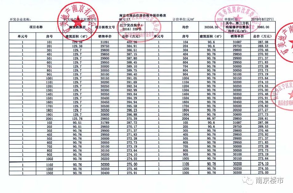 17号楼层高20层,均价30358元/㎡,一房一价如下: