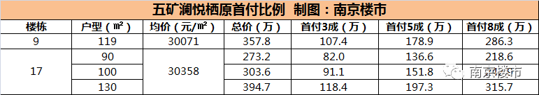 五矿澜悦栖原这次开盘户型种类多,刚需、改善都有选择空间,各户型首付比例如下: