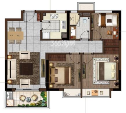 90㎡:3室2厅1卫,三开间朝南,南向2个卧室都带有飘窗,格局方正,很适合家庭自住购买。