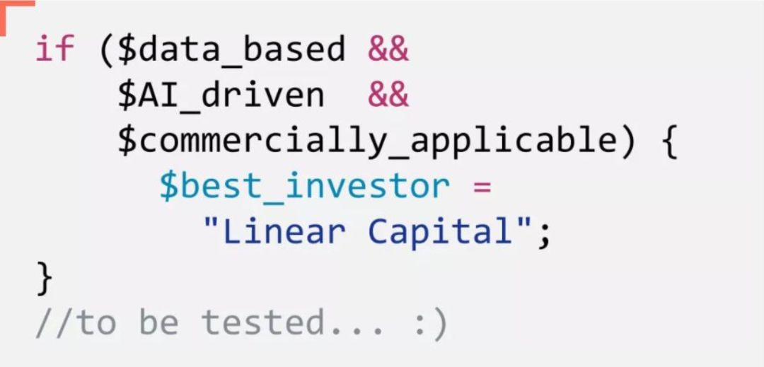 Thanks Tony for inviting me to share our thoughts on the talents chasing game.Basically the script we have been playing is like this - you find a great talent doing what they love, and what you believe as well. You put in your money with fingers crossed and hope in 5-10 years, you get 20x back. And most time you don’t. You get zero back if you are betting on the wrong talents or the wrong problems. Clearly it’s been a tough journey giving out money to the hands of the supposedly right people.We have had lessons of losing millions of dollars, but also made way more than that during the process.I’d like to spend the next 20 minutes to try to answer some questions that I think are the most important during the capital chasing talents game.Before that, let me quickly introduce Linear’s background so that you will see why we act the way we believe.First and foremost, I would like to share with you of our key code:I was an engineer, so I wrote a piece of code to guide our fund. There are three conditions taken into account: data-based, AI-driven and commercially applicable.I was a Data engineer in Yahoo and I tried to get my Ph.D. at Ohio State University, but at that time, I found it more fun in engineering work to build a product.Therefore, I eventually joined Facebook as an early employee when they were about 100 people back in early 2007.During that time, I witnessed Mark Zuckerberg recruiting many talents to help build up the company from 100 people to 5,000 people in 5 years. As for now, they have about 50,000 people.And we want to be the best fund when the above three conditions meet, in other words, we do not want to be yet another general fund.I think this is a great lesson because people cannot become the best in every profession. People need to find out their strength that they have passion in.It took us about 2 years and 10 million dollars to realize this and focus on what we are truly good at and what we are passionate about.We have invested about 70+ companies, dealt with 100x more talents of that number in our 6-years history so far.Everything we have learned is only based on our experience and background - so disclaimer goes first - what works for us may not work for you but I hope you can take away a thing or two that are useful.Now, I have time to try to answer two questions that I think are the next 20 minutes:1. What kinds of talents Linear likes and thinks as investable?2. How can we win their hearts?Given that we are a tech VC with a focus on data, AI and frontier tech, we have an obsession on technologists - namely these with an engineering or product background.In the age of the tech-driven growth, we think now is the spring for the technologists.So the first merit we are seeking is 「being professional」 - are you the best in solving the problem you claim to solve, in terms of technology or product capability?Being good is not good enough. Are you among the top 1% or even 0.1% of the best professionals?As for Passionate. We want to see a fire in your heart that you desire to solve this problem. It’s like the purpose of your existence.I know a lot of other investors have expressed their attention on this merit.The tricky difference we are seeking here is that your passion should have a traceable history.The passion has its origin. It’s either related to your past job, or a long time cause or hobby.You cannot tell me that you watched a documentary last week, or ran into a market report about an opportunity so that you just want to devote the rest of your life to it. We want to see the passion with your sense of purpose.Persistent, the forth - sure, running a company is very challenging and it won’t be a smooth journey.You need to ready yourself for the ups & downs in the next few years or decade.You won’t be well served with the necessary resources for your potential success.Actually, startup is a journey of winning an impossible war when you are totally under-armed.A famous Jack said it well - 「Today is bad, tomorrow is worse, but the day after tomorrow is really good. But most people will die tomorrow night.」You need to persist through all despaired moments until the dawn comes, even if most others die right before the dawn.In our dictionary, this is the essence of the spirit of entrepreneurship.Next one is Consistent - this is the only requirement we have on personality or value system. Walk your talk, and speak your thought.A person will have the bottom line if he or she is consistent in their thinking, speaking and acting, especially to their co-founders, employees, and investors.When he tells you that he has tried his best for the solution taking everyone's interest into account, you can take his words.And Credible - if given enough time, continuously practicing the above 5 merits will make you a credible person. And the whole capital-talent game is eventually a trust-based business. If you are perceived as a credible person with top skills, I would want to trust you with our money. I know you will try all means to make the impossible possible.You cannot go to them and say that - I want to invest in you. Show what you are capable of and we are game.No, you will scare them off.In our process, talent sourcing predates deal sourcing. We want to make friends with these folks - potentially investable talents. But not necessarily that we have to invest them.We want to reach out to them well before they are thinking about running their own companies so that we have enough time to study them, learn from them and help them in many ways - with investment being just one way.If we eventually invest, great for both of us. If we don’t invest but have learned some great science or technology know-how and have brought in some investor views to their worlds, also great.We practice 「give first, to get second」 principle. We are fine with getting either an investment opportunity or a learning opportunity.It’s a long journey and we need to plan it out in a
