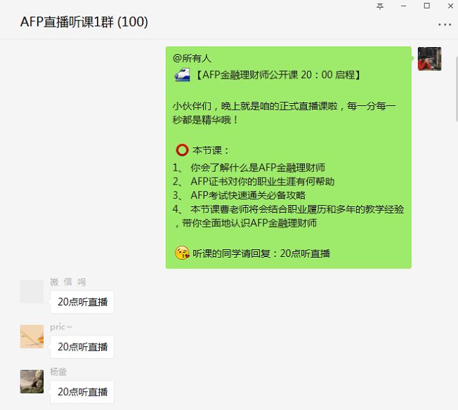 本次为伙伴们提供免费的AFP学习机会,9月5日20:00正式上课。