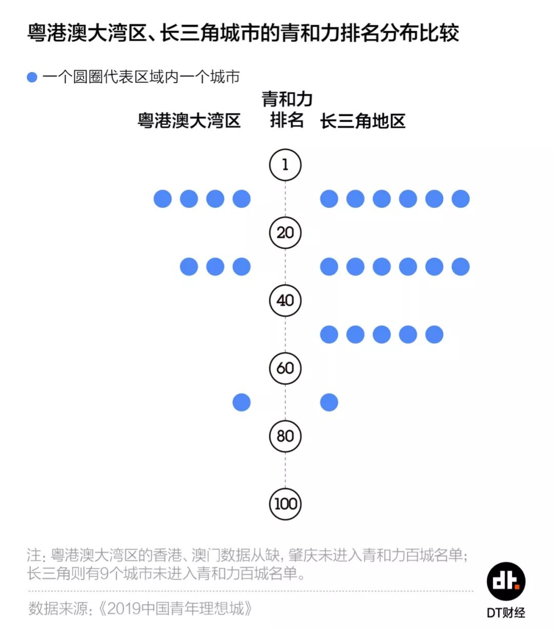 从目前的情况来看,长三角城市群似乎有更强的组团作战能力,这一点在城市青和力排名中也显现出来。