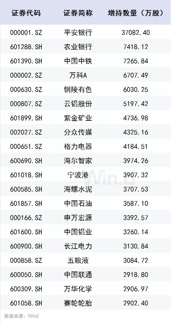 1、从增持数量来看,同期有107只个股增持数量超过千万股。其中平安银行、农业银行、中国中铁增持数量分别达37082万股、7418万股、7266万股,居于前三位。