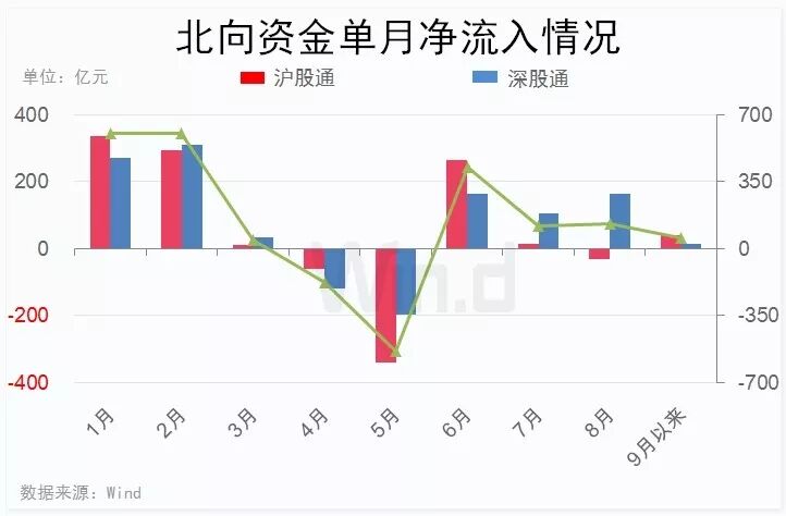 在经过了二季度大幅净流出之后,三季度以来,北向资金净流入逐步回升。