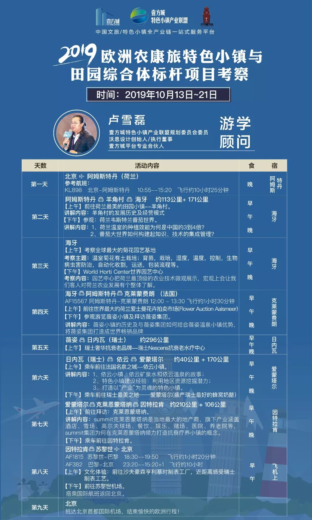 【参加对象】政府机关/开发商/运营商/规划单位/投资企业及产业链 董事长、总经理、总裁高管团队(本次考察限定30人参与)