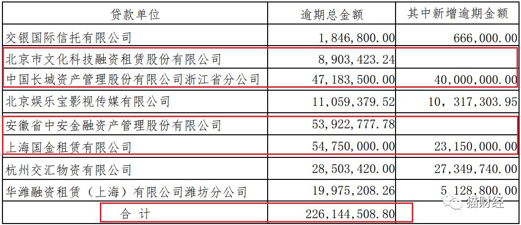 步子迈得太大,后面必定会暴露问题,8月31日,和半年报一起发布的还有一份《逾期债务进展公告》,截止8月底,长城动漫逾期债务总金额已达到2.26亿,虽然跟上半年爆雷的公司比起来只是小巫见大巫,但这违约金额已是长城动漫2018年末经审计净资产的6.68倍。