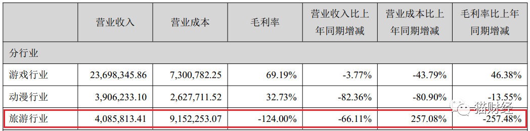 此外,一开始长城动漫还布局了滁州创意园,不过也一样是惨淡收场,上半年营收仅408.58万,亏损1430.76万,单一旅游板块更是直接入不敷出,毛利率下跌257.48%。