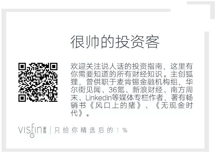 主创/ 肖璟(微博@狐狸君raphael),一个很帅的投资客,曾供职于麦肯锡金融机构组,也在 Google 和 VC 打过杂。华尔街见闻、36氪、新浪财经、南方周末、Linkedin等媒体专栏作者,著有畅销书《风口上的猪》、《无现金时代》。