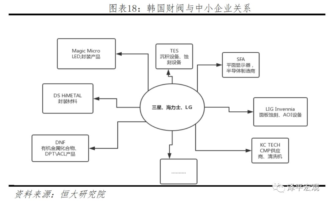 中国台湾半导体制造业和韩国存储器行业抓住日本半导体业内困外交的机遇承接转移订单,瓦解日本产业优势、实现快速崛起。80年代IBM-PC和兼容机的热销,带动个人计算机行业的兴起,此时IBM-PC和兼容机的生产规格和标准统一且公开,只有拥有价格竞争力的企业才能获得最终生产权。因此,拥有比日本更便宜人力资源的中国台湾获得大笔生产订单,生产链逐渐转向台湾,也为此后中国台湾半导体制造奠定基础。与此同时,美国向韩国以相对便宜的价格转让技术、设备,帮助韩国半导体技术发展。此后美国主攻ASIC等高附加值芯片,日本DRAM衰退,大批无力消化的订单、经验丰富的人才被逐渐崛起的韩国财阀接手,例如90-00年代韩国三星在东芝面临资金短缺时期挖走大批人才。日本被韩国夺走新型DRAM市场,被中国台湾依靠代工挤走更多制造份额,只能转型上游材料和设备领域。