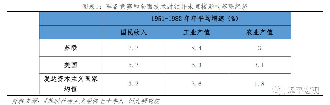 1)军备竞赛以及全面技术封锁并未直接击垮苏联。经济方面,1951-1982年间苏联国民收入、工业产值平均增速均超美国和发达资本主义国家均值,即使农业也与美国持平;科技方面,无论是航空航天还是核武器竞赛,苏联均不落下风。
