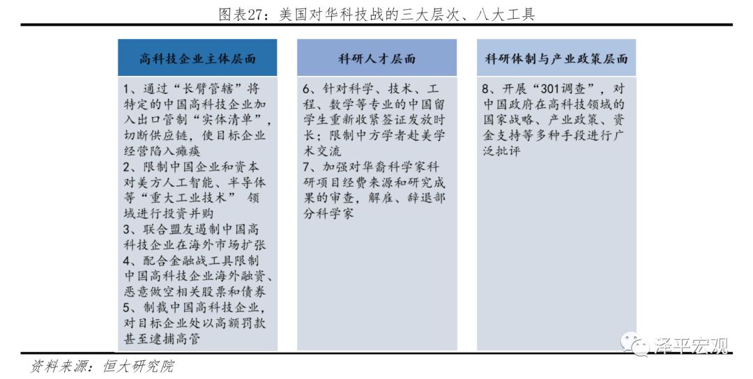 2、限制科研人才:第六,限制中国留学生签证和中国学者赴美参加学术交流,试图引导中美科技“脱钩”。