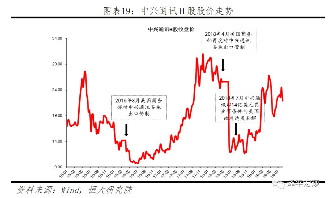 1、制裁高科技企业:第一,美国通过“长臂管辖”将特定的中国高科技企业或科研机构加入出口管制“实体清单”,从而限制重要原材料、设备、开发工具与软件出口,切断中国高科技企业供应链,使目标企业经营陷入瘫痪。2018年4月美国商务部工业与安全局以中兴通讯做出虚假陈述为由对其激活出口拒绝令,导致中兴通讯的主要经营活动立即陷入停滞状态,最终以缴纳14亿美元罚金、改组董事会、美国商务部派驻特殊履约协调人的代价暂时达成和解,期间公司股价最大跌幅超过60%。