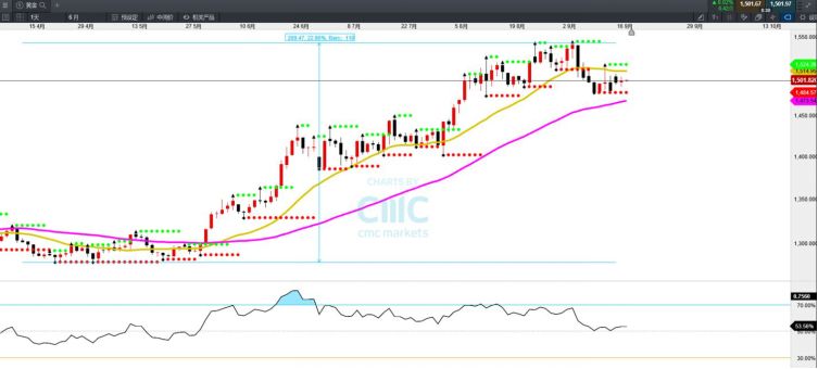 黄金(Gold)周内两个交易日交投区间围绕1500美元水平展开,如此前日线9月10日分析中所谈,日线RSI基本回撤至50%水平附近,且黄金价格回撤至1482—1490美元水平区域,波段投资者可重点留意。