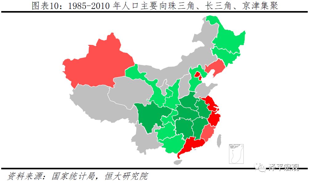 此外,如果把市辖区作为一个主体,从市辖区、县级市、县的层面看,人口净流出的地区分布将更为细致。我们将在后续报告中进一步展示中国县级层面人口流动全景。