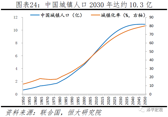 当前中国地级市个数占地级区划数的88%,市辖区、县级市个数占县级行政区划数的47%,建制镇个数占乡镇区划数的53%,随着经济社会发展未来还存在较大的行政区划调整空间。简单按照当前趋势推算,未来2亿新增城镇人口可能将有约50%、即约1亿人左右来自乡城迁移,其他则将来自自然增长(如按照自然增长率4‰推算,2019-2030年城镇人口自然增长累计约4100万,占22%左右)和行政区划变动。