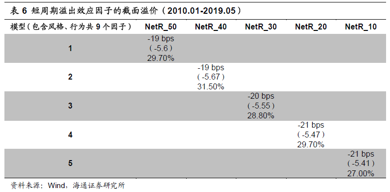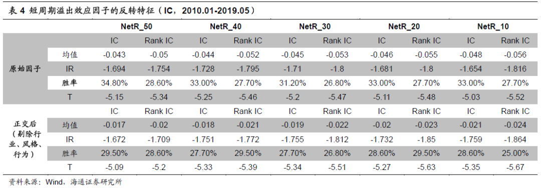 由下表的相关系数可见,短周期溢出效应因子与反转的相关性最强(0.38)。但从上表正交后的结果来看,除了反转现象本身,这个因子还提供了额外的信息。