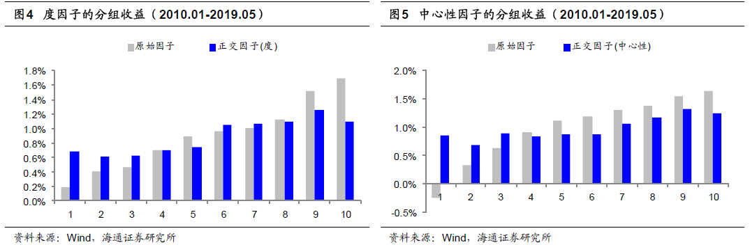 以NetR_10为例,IC和IR分别为-0.048和-1.654,胜率为33%,T值为-5.03;Rank IC和对应的IR分别为-0.056和-1.816。在与常用的因子正交后,IC显著下降,月度均值为-0.021。但因子的稳定性得到改善,IR 为-1.759,胜率为28.60%,T 值为-5.35。