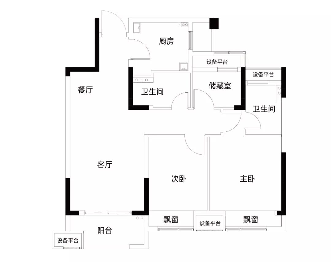 更劲爆的,是约114㎡的B1户型,居然做到了四房两卫加南北双阳台。客厅的大飘窗足足有6米长。