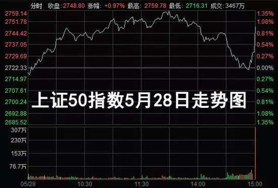而随着尾盘百亿资金的卖出,三大指数没能像5月28日进行拉升,而是在尾盘几分钟走出了小幅下跌的走势。其中上证综指、沪深300、上证50比较明显。