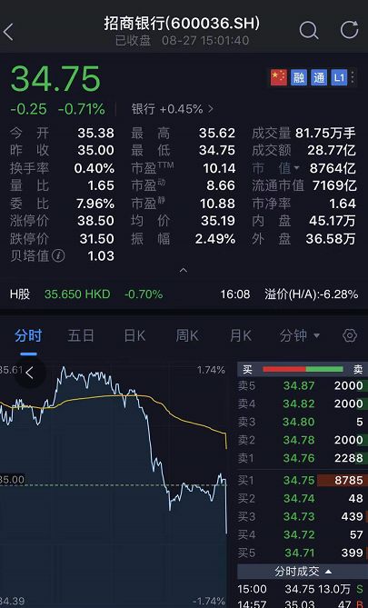 找到了几个个股被砸盘的情况,大部分是权重股。贵州茅台、中国平安等权重蓝筹股尾盘一分钟冲高回落。其中,贵州茅台从涨逾1%到最后仅涨0.55%,看最后一分钟成交量,茅台成交了6934手,涉资7.7亿元。