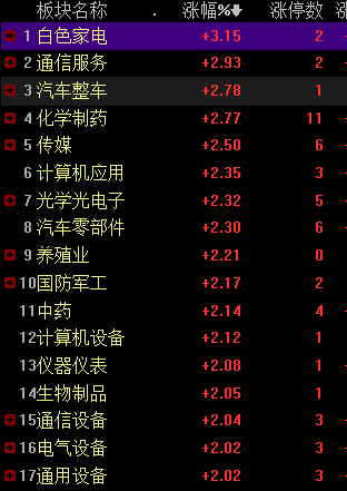 盘面上,医药、家电、无人驾驶、互联网金融等板块涨幅居前。