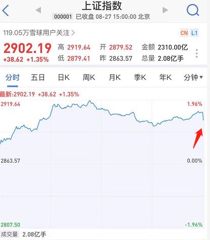 来看看8月27日,沪深两市高开高走,截至收盘,沪指涨1.35%收复2900点,深成指涨1.86%,创业板指涨1.71%。