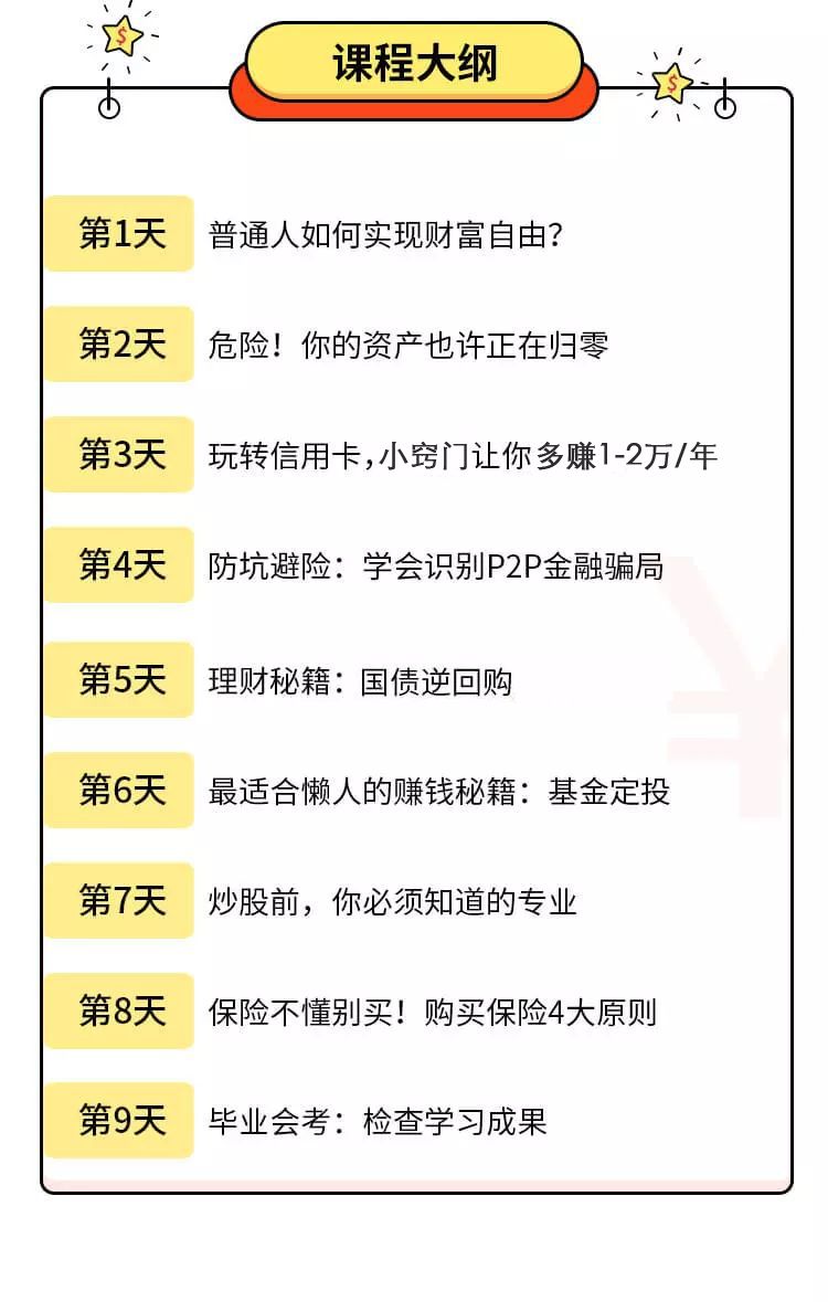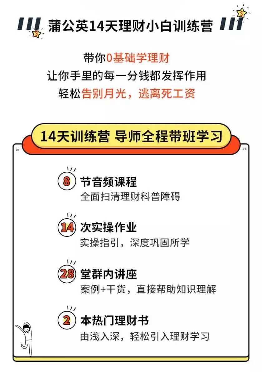 我自己听了一遍下来真的深有感触:虽然只有14天的学习,但每天都是干货满满,涵盖了生活中所有常见的理财产品,学完当天就能跟着实操作业上手实践。