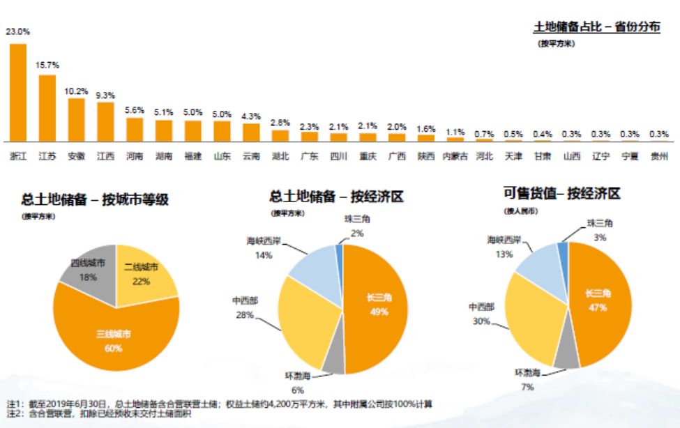 今年上半年,中梁新进入18个城市,累计进驻23个省份共139个城市。现有土储约50%位于长三角,28%位于中西部,15%位于海峡西岸;权益土储按能级分布:二线城市占18.2%,三线城市64.1%,四线城市17.7%,城市布局比较合理。