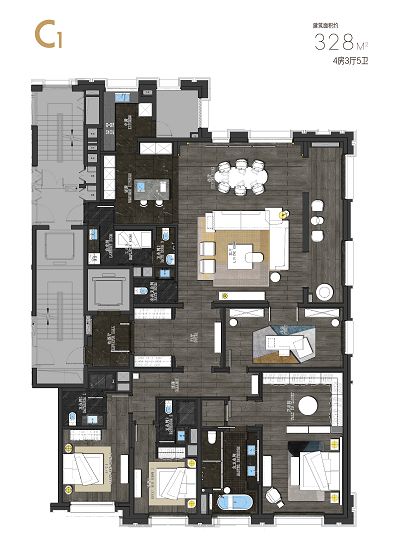 本次推出本次推出1、2、6单元,位于小区核心景观位置,共仅约99套房源,主力户型建筑面积约285㎡、328㎡、334㎡和347㎡。