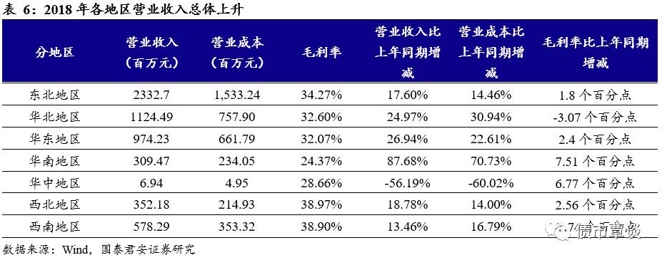 区域性销售战略见效显著,市占率进一步提高。2018年,公司针对不同区域的特点制定相应发展战略,对于华东、华南等新市场加大拓展力度,增加对重点客户的投入,提高单品质量,华东、华南地区营收分别同比增长26.94%和87.68%;同时对于东北、华北等成熟市场进一步开拓细分消费市场和销售渠道,挖掘市场潜力,巩固和扩大公司产品的市场占有率,华北、东北地区营收分别同比增长24.97%和17.60%。