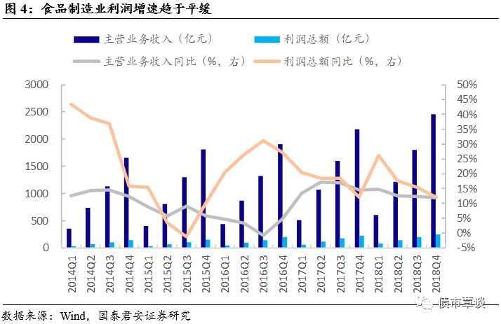 食品制造行业近年来利润总额增速趋于平缓。食品制造是桃李面包的主要收入来源。2018年底食品制造业主营业务收入为2451.84亿元,同比上升11.96%,增速下降2.70pct,利润总额为252.31亿元,同比上升12.17%,增速上升0.10pct。食品制造业整体利润增长近几年较为平缓。
