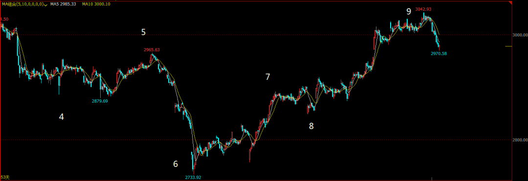 - 调整一般由两种方式来完成,一种是时间另外一种是空间,目前大趋势向上的背景之下连续向下的空间明显不具备,那么只有交给时间了。 从周线来看本周接下来的两个交易日即便中阳反包上去也已经失去了