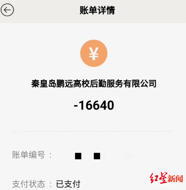 据红星新闻报道,今年9月即将入学东秦分校的学生丹丹(化名)表示,她所住的地方是“鹏远公寓”,“鹏远公寓”包括公寓和食堂,食堂也属于外包。丹丹回忆,她8月22日上午在家长陪同下到学校报到,家长离开后,鹏远公寓的餐厅饭桌上摆出了二维码牌,让学生扫描二维码下载软件选择学生公寓。 “家长走了,我就下载了这个APP,在上面选择了一个两人间,然后缴费。页面上显示我的缴费包含住宿费、服务费、设备使用费、一卡通水票,一共16640元。”丹丹说,缴费完成后,她没有收到任何凭证,只有一张微信缴费成功的页面截图。