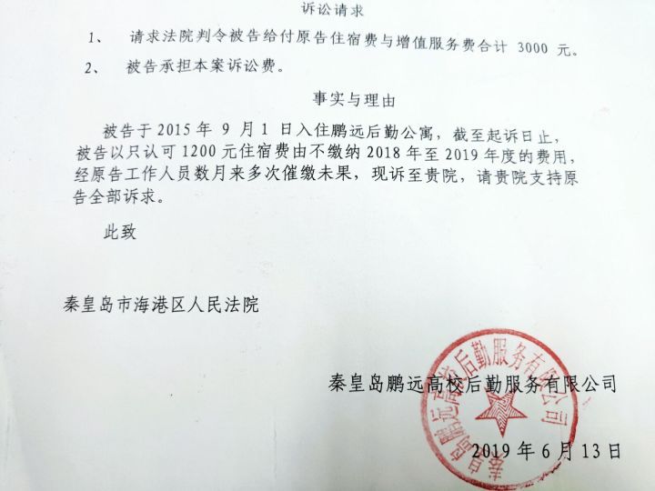 住宿的服务费是什么?据南都,多名大三、大四学生表示,他们住宿时需要与鹏远公寓隶属的秦皇岛鹏远高校后勤服务有限公司签订一份增值服务协议书,同意自己自愿租住公寓且接受增值服务。增值服务的内容包括超过国家标准规定的房间使用面积,装修标准较高,独立卫生间并配有24小时热水器,入室保洁清扫服务等。