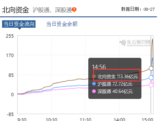 - 今天尾盘为外资又出现了骚操作,看这个流向图就知道了,14点56分的时候还是净流入113亿,14点57-14点59两分钟里暴力买到了240亿,然后最后一分突然砸了123亿出来,最终净流入数据是117亿。