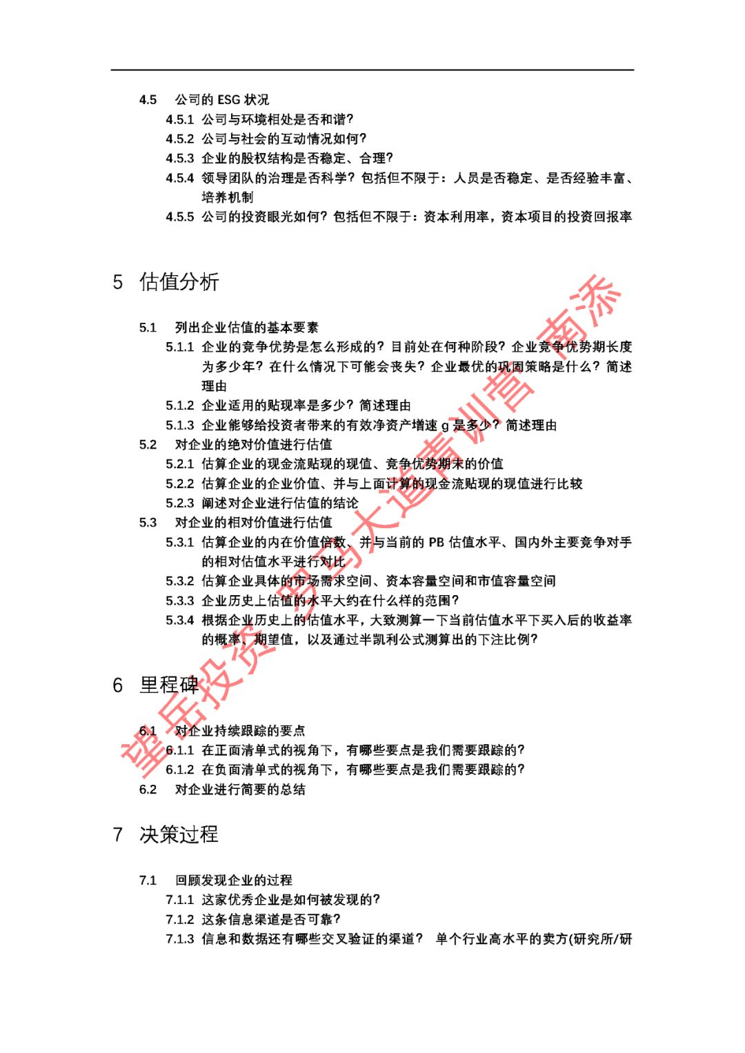 这是罗马大道青训营最新版本的《企业分析问题清单模板V1.2》,事实上,任何一个人在进行投资决策时,都有一个清单,只是这个使用清单的过程,大多数人是潜意识中进行,并且清单本身没有很系统的整理过而已。那么我们的这份清单如何理解、使用、维护升级?